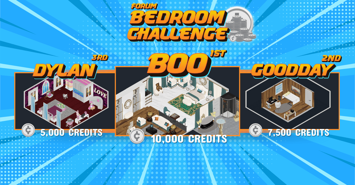 Tom-L Congratulations to the Bedroom Challenge winners! You credits have been awarded. Well done to everybody who got involved 🙂
