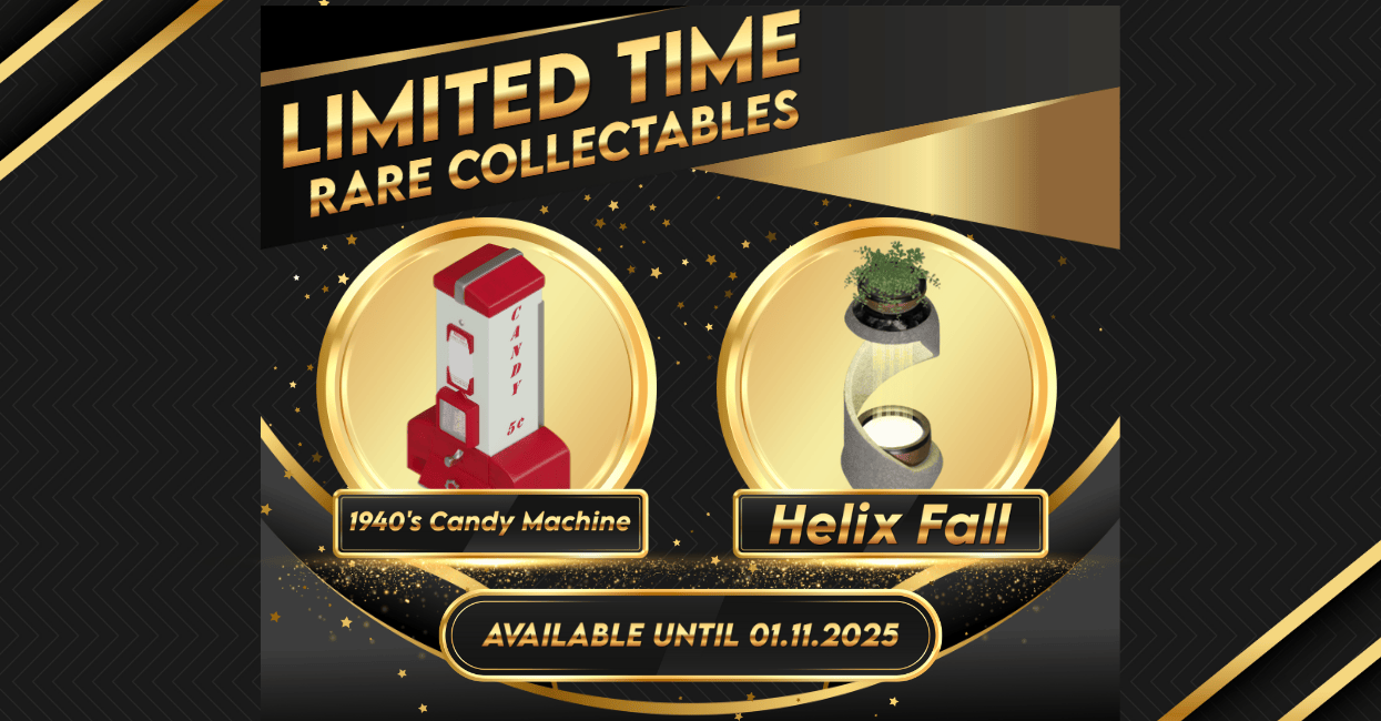 Tom-L The 1940's Candy Vending Machine & The Helix Fall have arrived in MegaPlanet for a limited time only! Grab yours now and hold on tight, limited items gain value over time once they become rare!